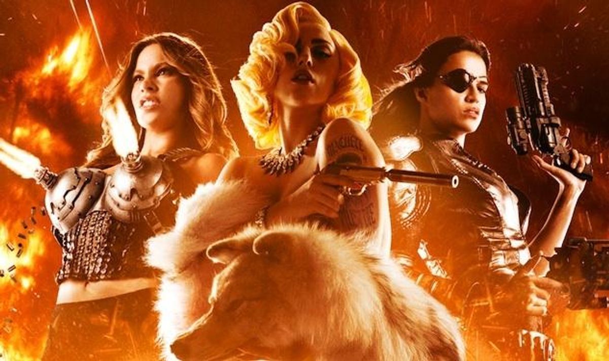 Whether it's a thing about "incredibly sexy women" or "strong girls" or being "empowering," the entire female cast of Machete Kills (out Oct. 11) seems to agree that both men and women enjoy when ladies blow things up. In this behind the scenes featurette, you can : Watch Sophia Vergara use her machine gun tits. Watch Lady Gaga do her thing. And this great bit of dialogue: