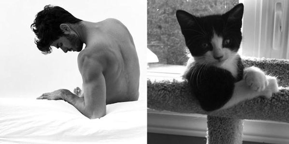 It's widely agreed that if all the Internet could be embodied by a symbol, it'd be a cute cat. If the interwebs could be parsed by user populations, the symbol for the Internet of men who enjoy the company of other men would be dudes in underwear. Des Hommes et Des Chatons ("Men and Cats") is a single-topic blog that gets it. These photos of hot models (and some actors like Channing Tatum & Michael Fassbender) have been paired with cats in similarly seductive poses. For more, click here.