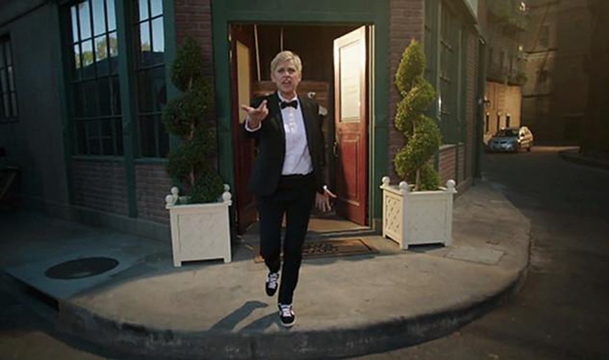 Ellen DeGeneres is ready to take over hosting duties of the 2014 Academy Awards. The comedian gathered 250 tuxedo-clad performers for a DeGeneres-like dance through the streets. The spot, directed by Paul Feig (Bridesmaids), is the first of many to come between now and March.