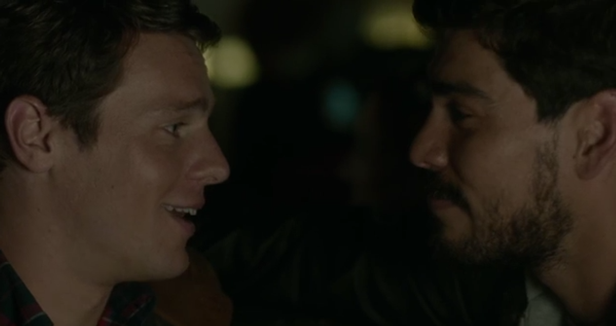 While Patrick contemplated kale salads, Dom found that comfort was one Grindr message away (and, apparently, a few floors down). However, even this hookup (played by Broadway's Andrew Keenan-Bolger) couldn't cover up the wounds left by his ex-boyfriend. That's the thing about Grindr tricks, they cum and they go but they don't stick around to clean up the mess.