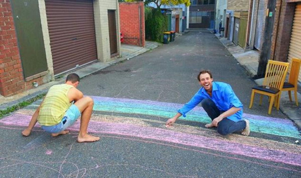 The night after the crosswalk had been removed, Brechney was inspired to take action of his own. He picked up some chalk, gathered his mates and created a rainbow crosswalk on his street. Of course, like many Facebook users, he took pictures (above) of their work and shared them online.