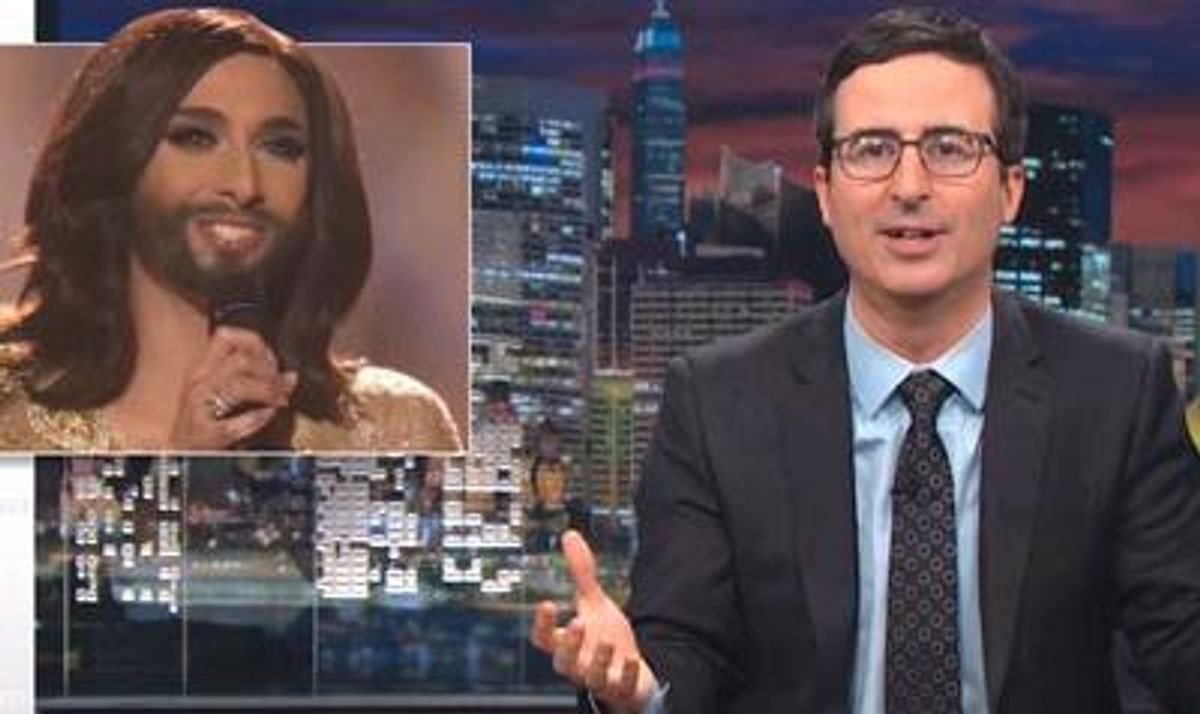 "Basically, 37 European countries sublimate thousands of years of ethnic and religious tensions into a series of bizarre three-minute song-tastrophes," Oliver joked, before highlighting the "spectacularly wonderful" win of Austria's bearded drag diva, Conchita Wurst. "Is it just me, or between Conchita and Michael Sam, did the whole world feel like it became a better place to live in the last 24 hours?" Oliver asked.