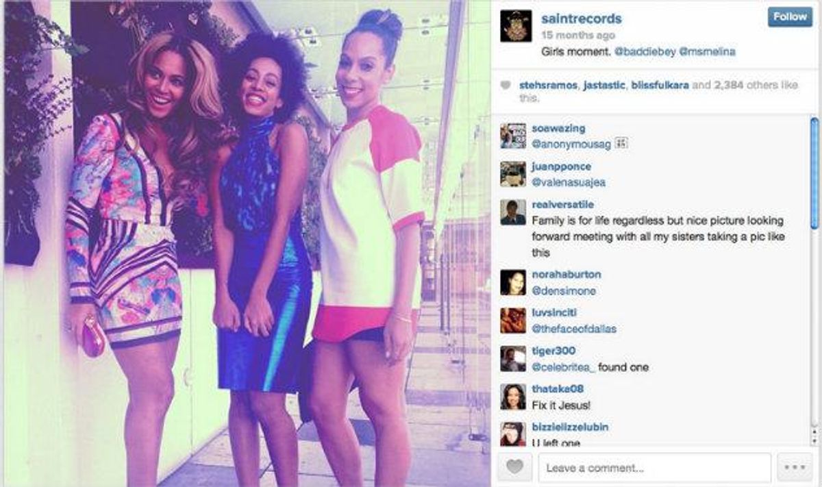 Solange has deleted all photos of Beyonce from her Instagram account, save for the above photo. Though that might seem like the start of a family feud, the New York Daily News (who, in a rare occurrence, came up with the exact-same headline as their rival the New York Post when reporting the story this morning) reports that the sisters both jetted down to Costa Rica this weekend to attend the wedding of Destiny's Child band member Kelly Rowland.