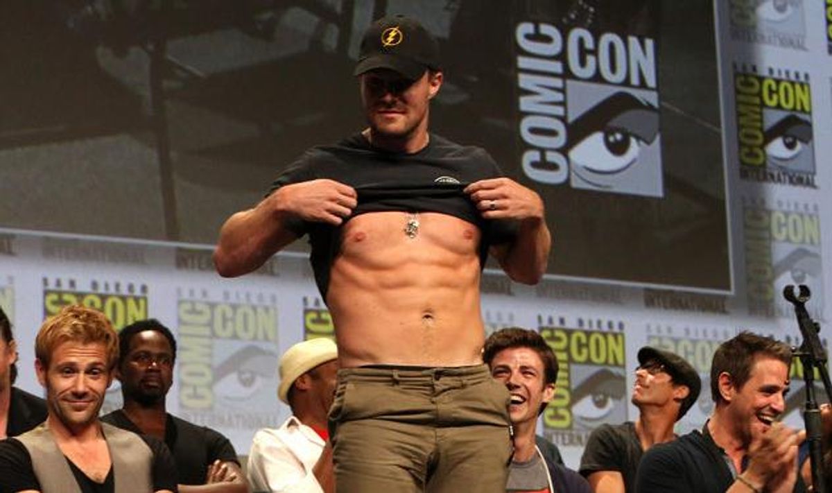 Move over Superman, there's another hero with some abs of steel and he goes by the name Arrow. The star of the CW comic book series didn't hesitate when a fan requested Amell to show off his body in person.