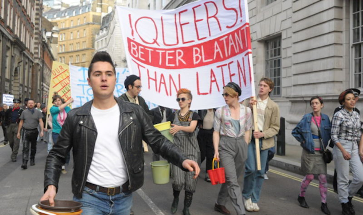 "It's the summer of 1984 -- Margaret Thatcher is in power and the National Union of Mineworkers (NUM) is on strike," read press notes about the British film. "At the Gay Pride March in London, a group of gay and lesbian activists decides to raise money to support the families of the striking miners. But there is a problem. The Union seems embarrassed to receive their support. But the activists are not deterred. They decide to ignore the Union and go direct to the miners. They identify a mining village in deepest Wales and set off in a mini bus to make their donation in person. And so begins the extraordinary story of two seemingly alien communities who form a surprising and ultimately triumphant partnership."