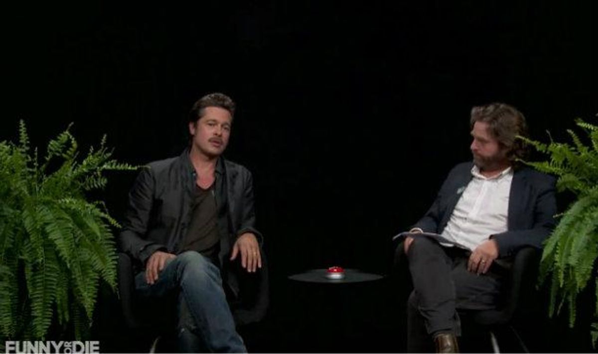 1. Zach Galifinakis is back with his Emmy-winning web series, "Between Two Ferns," which was last seen when President Obama sat down with the funny man. In the latest episode, Brad Pitt squares off with Galifinakis in a chat about the Fury actor's love of Friends, his "boring" charity work, and his other film, Furry. [Variety]