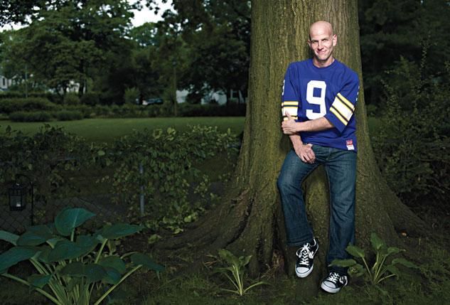 There is, apparently, a paint company dedicated to replicating the colors of sports teams. In another room, Max says, "This wall used to be both Ohio State yellow and Tulane green; I recently changed it to this periwinkle that I love." He has a theory that football games look better on TV if the color combinations of the team complement each other, and he blames the Minnesota Vikings' purple strip for turning him into a fan at the age of five. "That's probably a little gay, too," he chuckles.