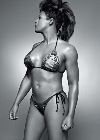 But it's difficult not to sexualize Fox, because she is sexy. Like other female athletes, who by their own genetic makeup possess the most alluring characteristics of both sexes, Fox is a bewitching mixture of soft and hard. Hers is a body that defies circumstance. At 5-foot-8 and 143 pounds, she's free of body fat. Handsome biceps and triceps rope around her arms. There are big curves up top and smooth, delicate thighs with scarred shins down below; sinewy abs bisect her petite stomach, and her face is wide like a housecat's. Her exaggerated jawline is offset by the fullness of her lips; she has perfectly sculpted Kardashian brows adorning soft caramel eyes.