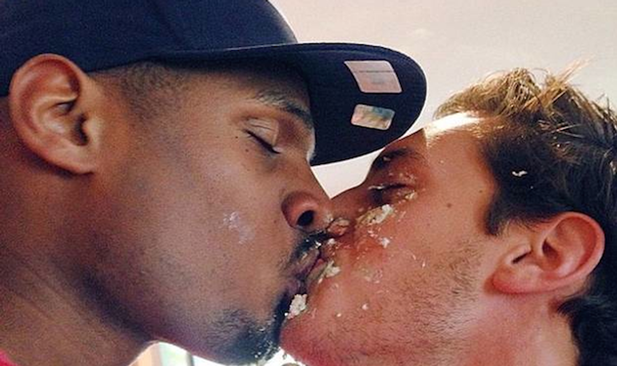 Jason Collins, who himself made history last year by becoming the first active NBA player to come out as gay, then later this year became the first openly gay man to play in a major American team sport when he joined the Brooklyn Nets, told ESPN that Saturday was "a great day for the NFL and for Michael and his family," according to Bleacher Report. Of course, not everyone was thrilled with Sam's history-making draft or, apparently, the kisses and hugs that Sam shared with his boyfriend, Vito Cammisano, moments after learning he'd be joining the NFL. Those embraces aired on ESPN, marking another historic first. Miami Dolphins defensive back Don Jones tweeted out a pearl-clutching "omg" after ESPN aired Sam and Cammisano's kiss, responding to a tweet asking if he was indeed referencing Sam by simply writing "horrible." The tweets were quickly removed. But according to the Miami Herald, Dolphins head coach Dennis Hickey was "disappointed in those comments," and plans to discuss the reaction with Jones. "That's not what we stand for as an organization," Hickey told the Herald. None of the negative backlash seemed to damper Sam or Cammisano's spirits, however, judging by the celebratory tweets both men have been sending since Saturday's announcement. BuzzFeed reports that Cammisano is a fellow Mizzou graduate, who was, like Sam, an out athlete at the D-1 school. Cammisano competed on the school's swim team, and has been tweeting adorable photos of himself and his boyfriend for months, including this selfie from Saturday's celebration: