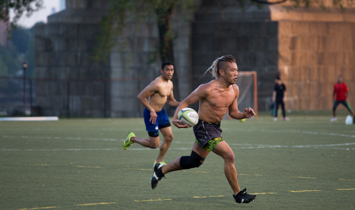 Rugby is a brutal sport. It rewards power and toughness. Collisions and crunching tackles regularly leave players with bloody noses, black eyes and broken bones. The sport's rawness is on full display on a bright but blustery Saturday morning in early April on Randall's Island, between Manhattan and Queens in the East River. The Gotham Knights Rugby Football Club is locked in a tense battle with Old Maroon Rugby Football Club. With the first half nearing a close, an Old Maroon player stumbles off the field and sprawls out on the sideline. Blood pours from his nose and covers his face.