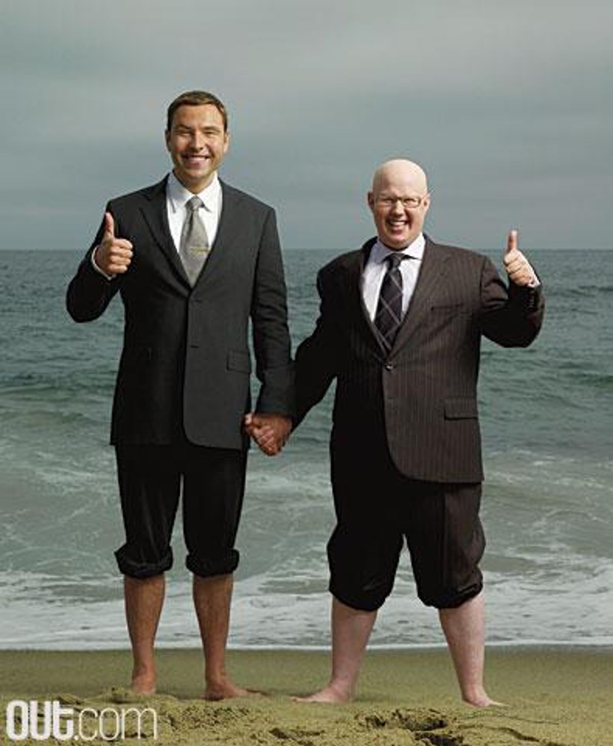 Little Britain is the funniest TV show in the world. It's sort of a fake documentary about life in England. It is narrated in stupid little sentences. It stars Matt Lucas and David Walliams. Lucas used to play a giant baby on a fake game show. He is gay. Many people think Walliams is also gay. He isn't. But he did once swim the English Channel. Lucas plays Daffyd, the Only Gay in the Village; nymphomaniac socialite Bubbles Devere; and Vicky Pollard. Mr. Giles from Buffy was in it too. Walliams plays mostly gay or in drag. Did we already mention they are the funniest men in the world? Now they've shot a six-part version of their show for HBO. And have added American characters. These pictures were taken at Zuma Beach in Malibu. People kept coming up to them and asking who they were. A cop on a motorcycle came up and said, "Are they comedians? I'm the funniest man on this beach." Why the car? he asked. We said because they've come to invade America.