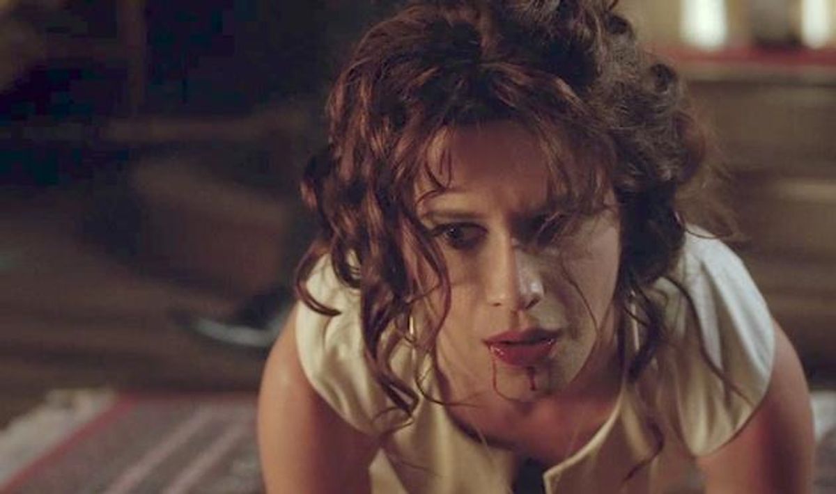 We've seen Bill Compton play Wii Golf, seduce Sam, and twist his girlfriend's head around, but nothing could've prepared us for THIS. (I.e. Bill exploding into a pool of blood and emerging as an angry, naked vampire goddess hell-bent on killing everything in the universe.) But let's not get ahead of ourselves. There were waaaaay more moments in this episode that had everyone in my living room gasping dramatically. (P.S. By "everyone," I mean me.)