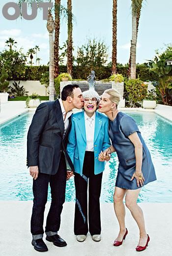 Broadway and Hollywood legend Carol Channing lives here. At 92, she has grown a little frail -- she has some trouble walking, and her eyesight is weak -- but she is still a bewitching, arrestingly vivid personality. The very air around her seemed to sizzle as she and performance artist Justin Vivian Bond were photographed recently beside the pool of her friend Sylvia's lovely ranch-style house. She cracked wise, hammed it up, and gracefully accepted compliments on her snappy blue trouser suit, which featured a bejeweled, embroidered snake winding up one leg. The shoot took place in honor of Gentlemen Prefer Blondes: An Intimate Evening With Carol Channing and Justin Vivian Bond, a special event taking place on January 20 at the Town Hall in New York City.