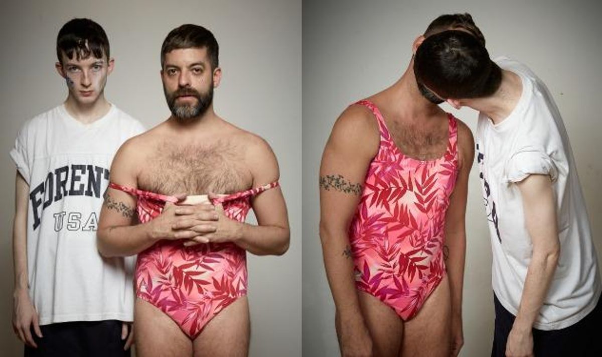 There is a long, humorous and engaging section in which Mahar and Gutierrez recite and repeat and distort sentences in sync, the verbal equivalent of their earlier dance. They say things like: "We are the dancers, bitches"; "We are beautiful"; "Do you want to fuck us?" Then, in what has become a recurring device in his work, Gutierrez, now in fluffy white tulle, grabs a mic and starts looping his own voice, hopping around and screaming like a rockstar.