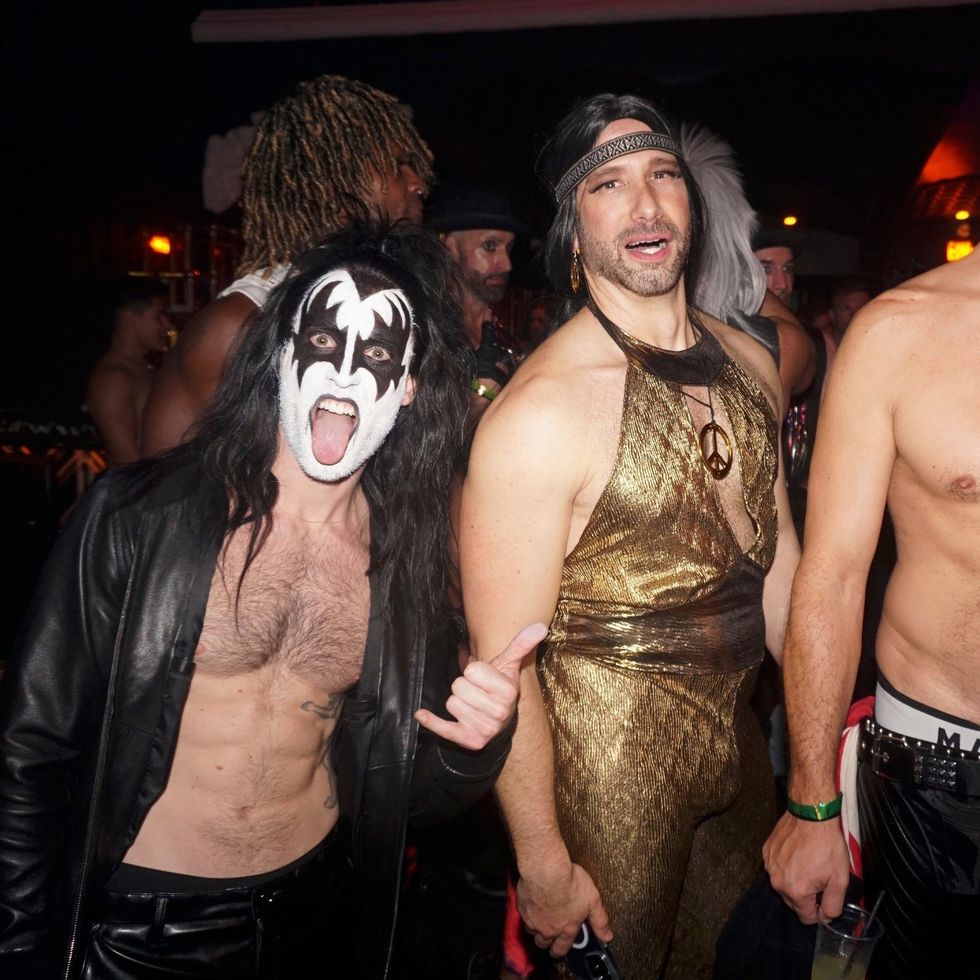 Queer attendees arrived at the Avalon nightclub in Hollywood on Friday the 13th dressed in revealing rock-themed costumes. Notables in attendance included Janice Dickinson, Danny Franzese, RuPaul’s Drag Race Pit Crew member Bruno Alcantara, Glee star Ashley Fink, actor Kais Boukthir, and Eastsiders’ Kit Williamson and John Halbach.
