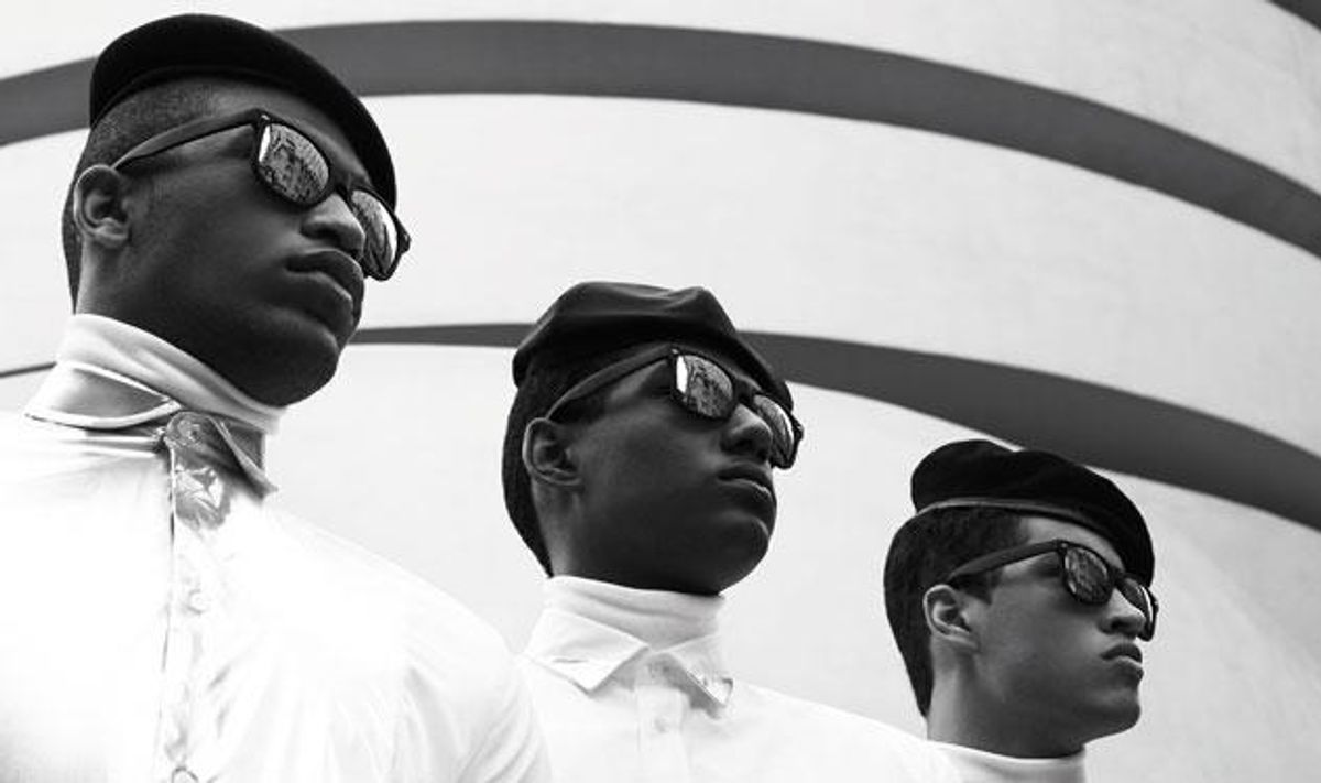 From left: beret by Louis Vuitton, $630; beret by Giorgio Armani, $425; beret by American Apparel, $20; turtlenecks by Prada, $595; button-down shirts by Bottega Veneta, $450-$510