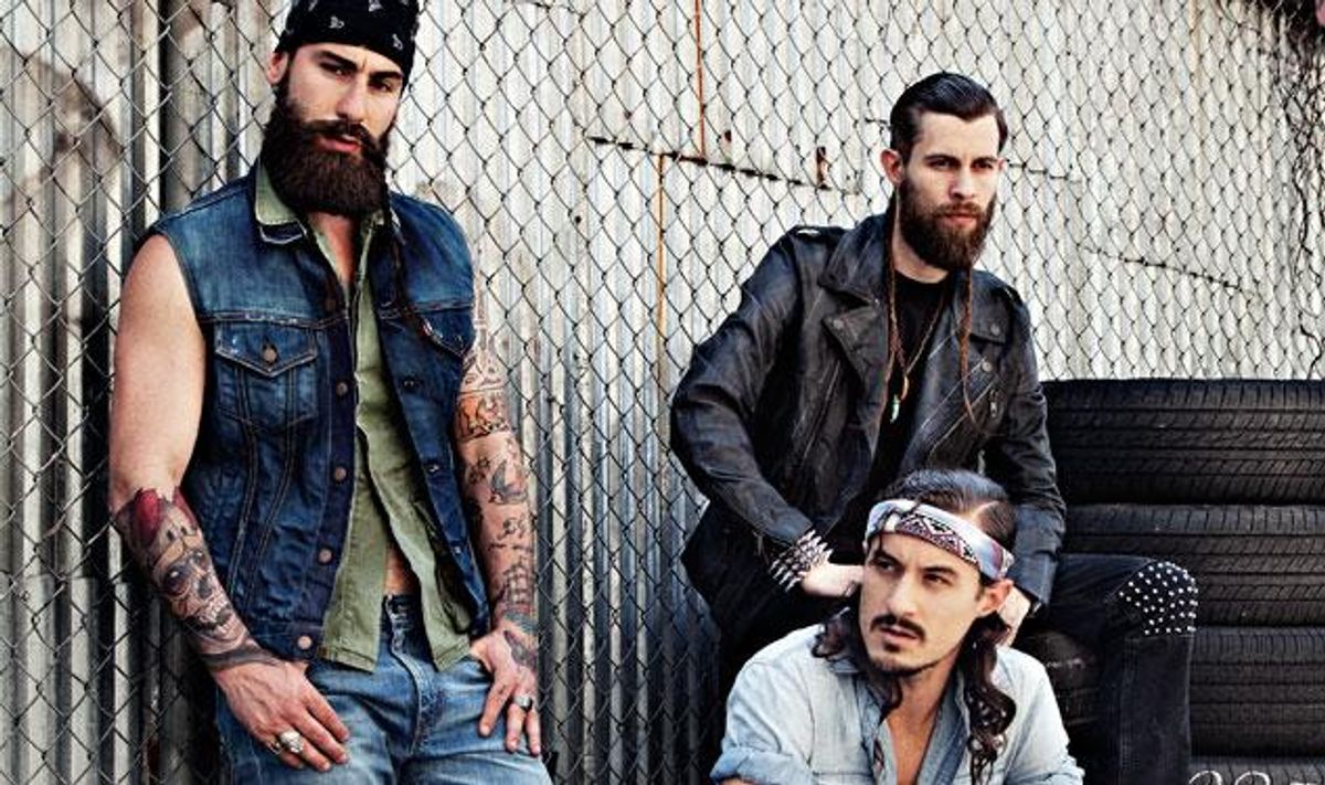 Left to right: Sleeveless military jacket available for rent at Early Halloween; Denim vest, $78, and jeans, $78, by Levi's; Bandana and rings available at Beacon's Closet; Boots by Versace; Tank top and leather cuff by Dior Homme; Denim shirt, $79, and pants, $398, by Kenneth Cole; Bandana, jewelry, and boots available at What Goes Around Comes Around; T-shirt by Levi's; Leather jacket by Diesel Black Gold, $1,335; Studded jeans by Topman, $80; Jewelry available at Beacon's Closet; Boots by Salvatore Ferragamo.