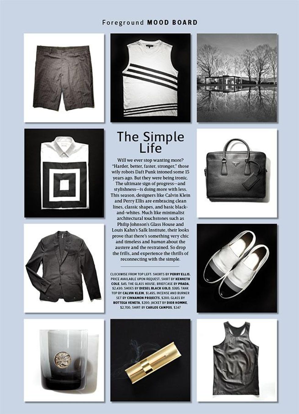 Will we ever stop wanting more? "Harder, better, faster, stronger," those wily robots Daft Punk intoned some 15 years ago. But they were being ironic. The ultimate sign of progress -- and stylishness -- is doing more with less. This season, designers like Calvin Klein and Perry Ellis are embracing clean lines, classic shapes, and basic black-and-whites. Much like minimalist architectural touchstones such as Philip Johnson's Glass House and Louis Kahn's Salk Institute, their looks prove that there's something very chic and timeless and human about the austere and the restrained. So drop the frills, and experience the thrills of reconnecting with the simple.