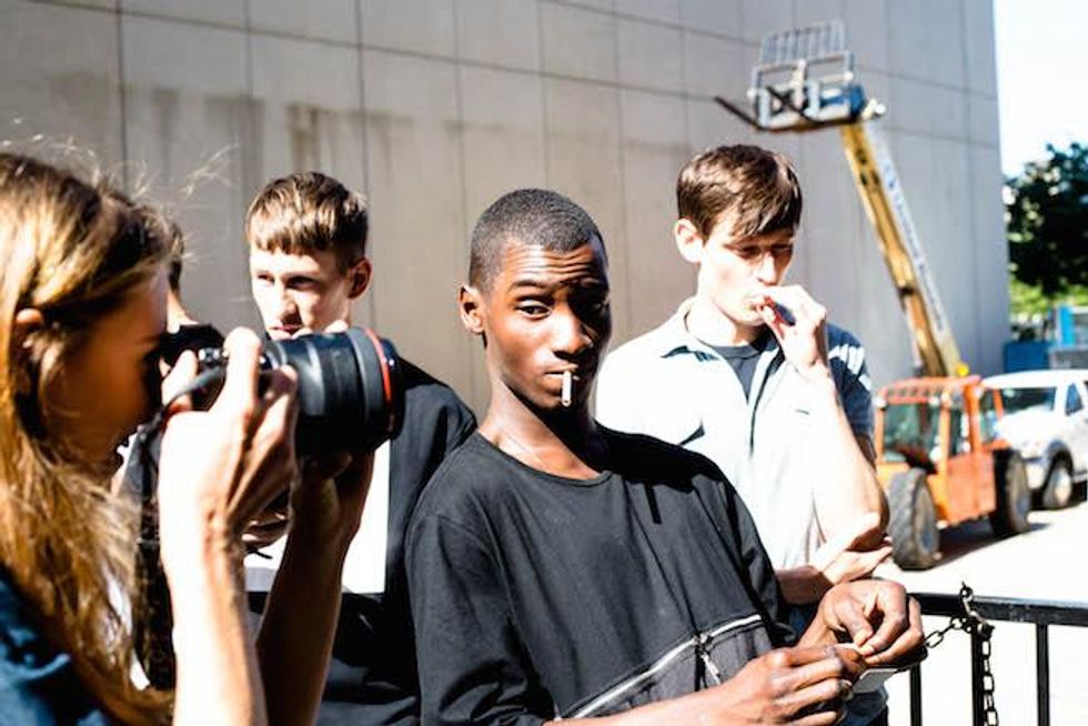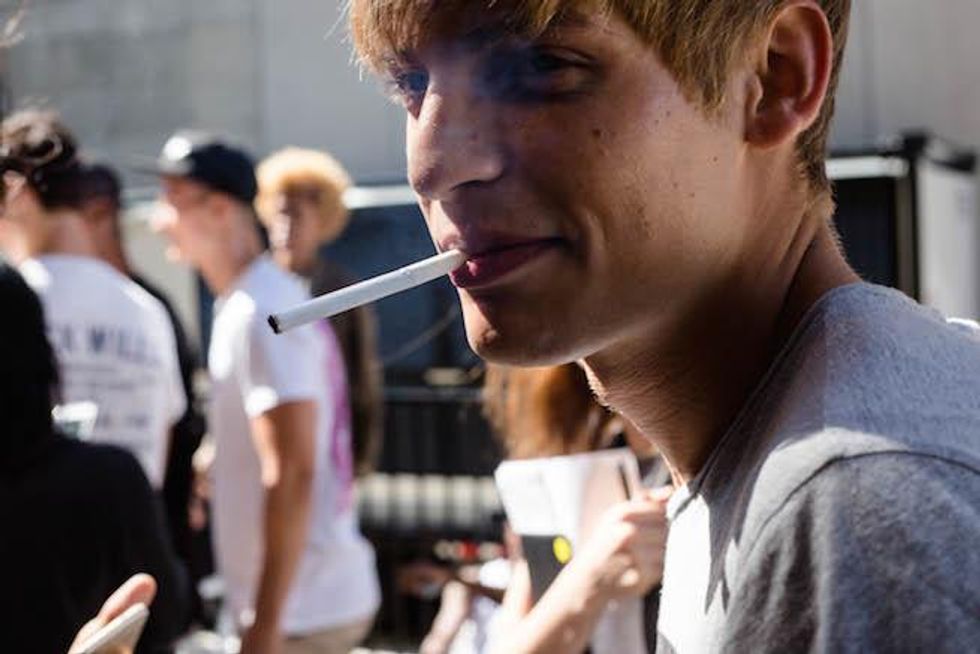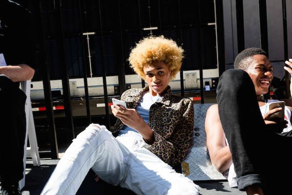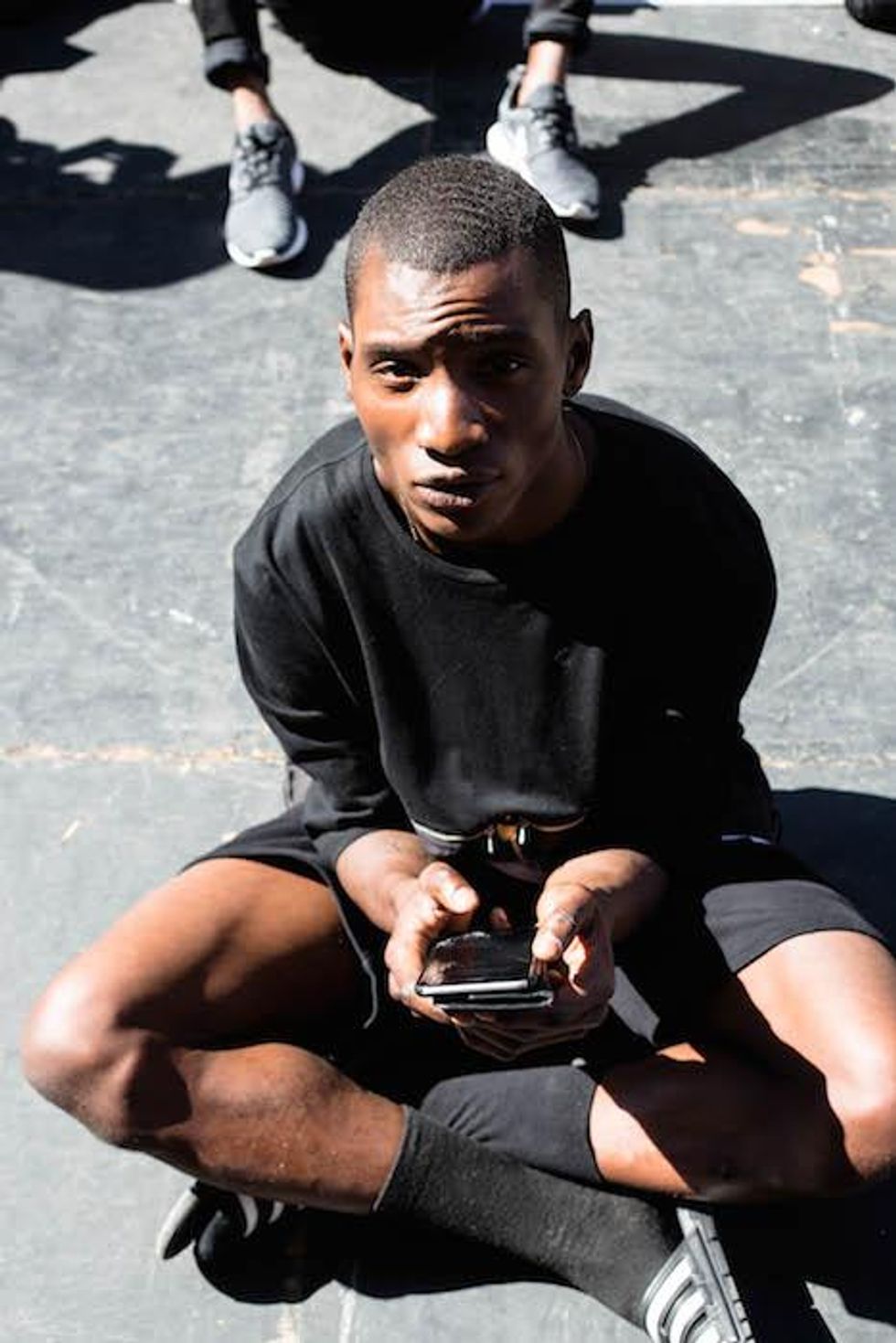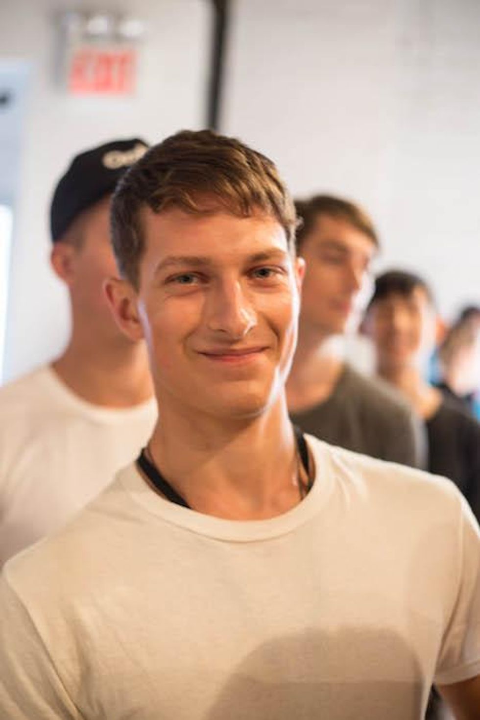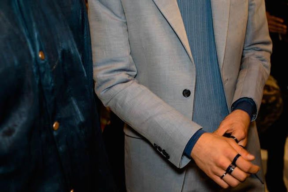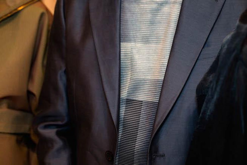 "I was inspired by guys coming to and from the gym," Maccari told WWD, pointing to the open shirts, compression tights under baggy shorts and cropped bombers. Playful prints in sweaters and jackets ranged from explosive weaves to painterly graphics, while the suit silhouette was very structured. The shoulder became more powerful, pants were fuller and the jackets were elongated. "I'm tired of seeing short jackets."