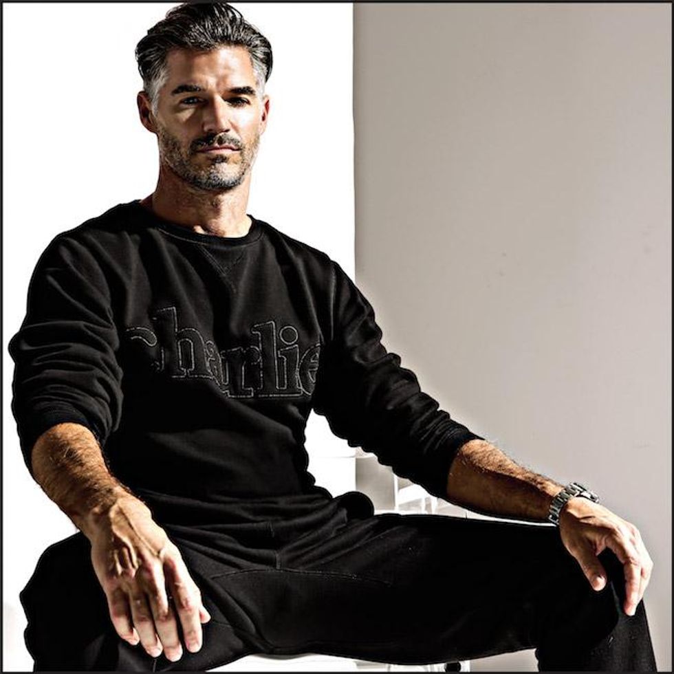 The impossibly handsome Eric Rutherford is the latest Charlie hunk. Succeeding Pietro Boselli and Walter Savage, the silver fox models designer Matthew Zink's rather unsung menswear collection, which includes fitted denim work shirts and luxury sweatsuits. Shop the collection at CharliebyMZ.com