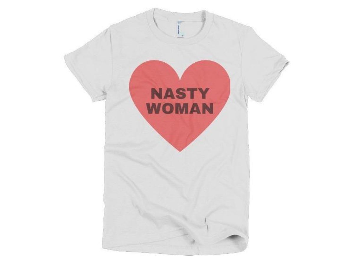 Less than 24 hours later, "Nasty Woman" T-shirts are springing up everywhere, including these lovely ones from Google Ghost, which are donating 50 percent of their proceeds to Planned Parenthood.