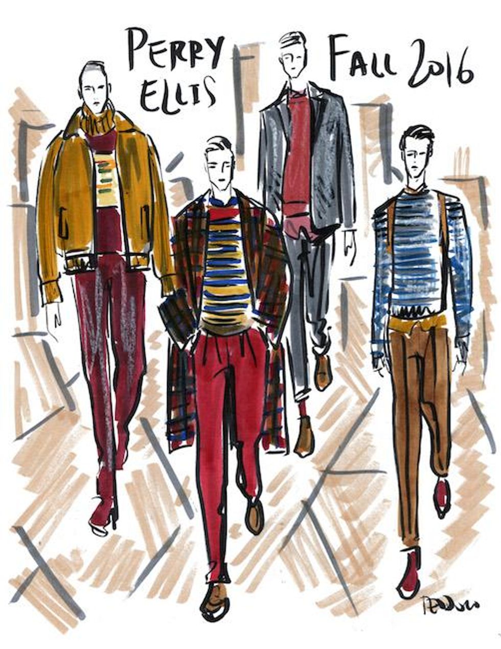 Illustrator Justin Teodoro (@justinteodoro) gives his fly-on-the-wall account of the Perry Ellis collection at New York Fashion Week Men's. Click through to read the story.