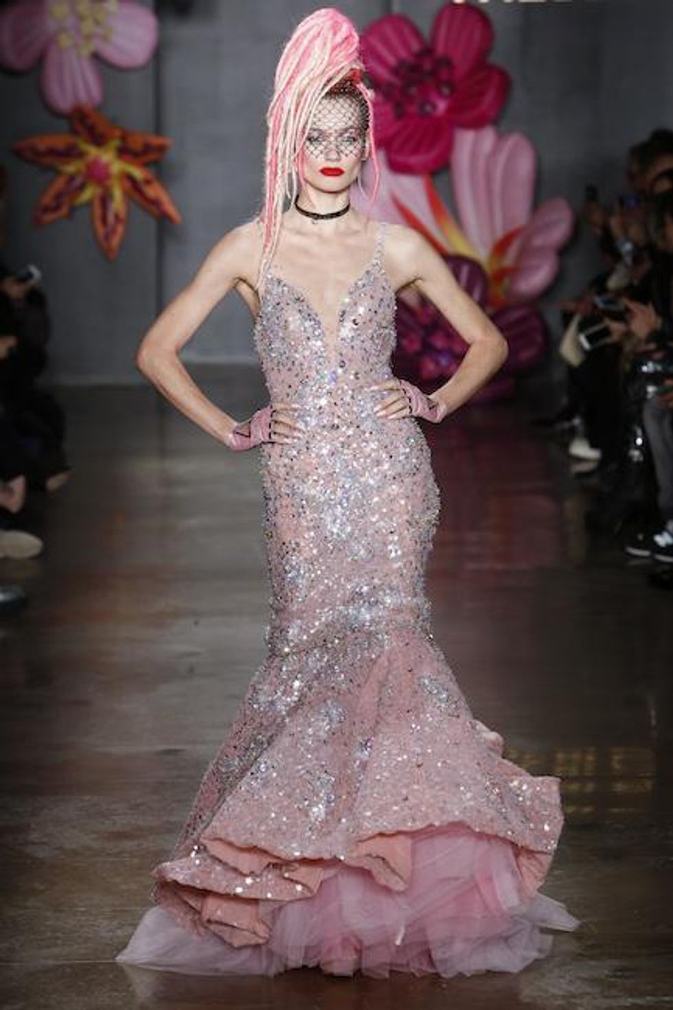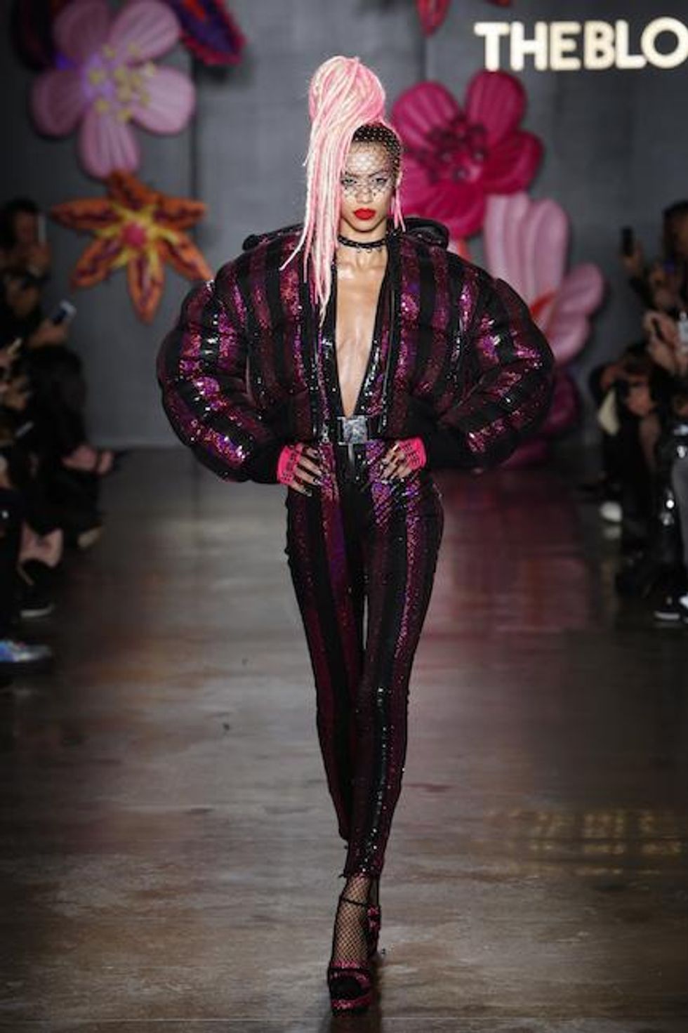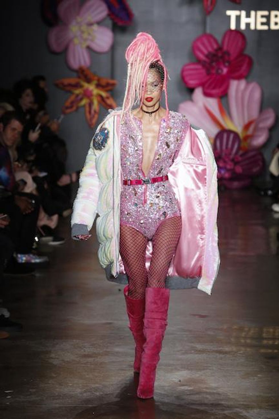 Designing outfits for Beyonce, Nicki Minaj, and Britney Spears (to name just a few of their diva clientele), Philippe and David Blond's collection is music video-ready. There were frilled, glittered dresses perfect for a "Pretty in Pink" prom, oversized 90s-esque sequined puffer jackets, and lots and lots of pink.