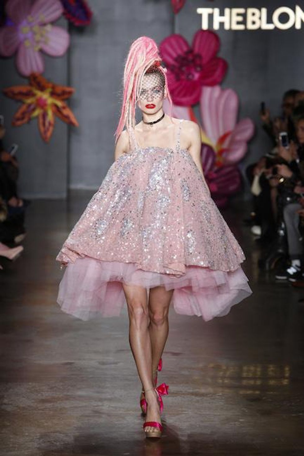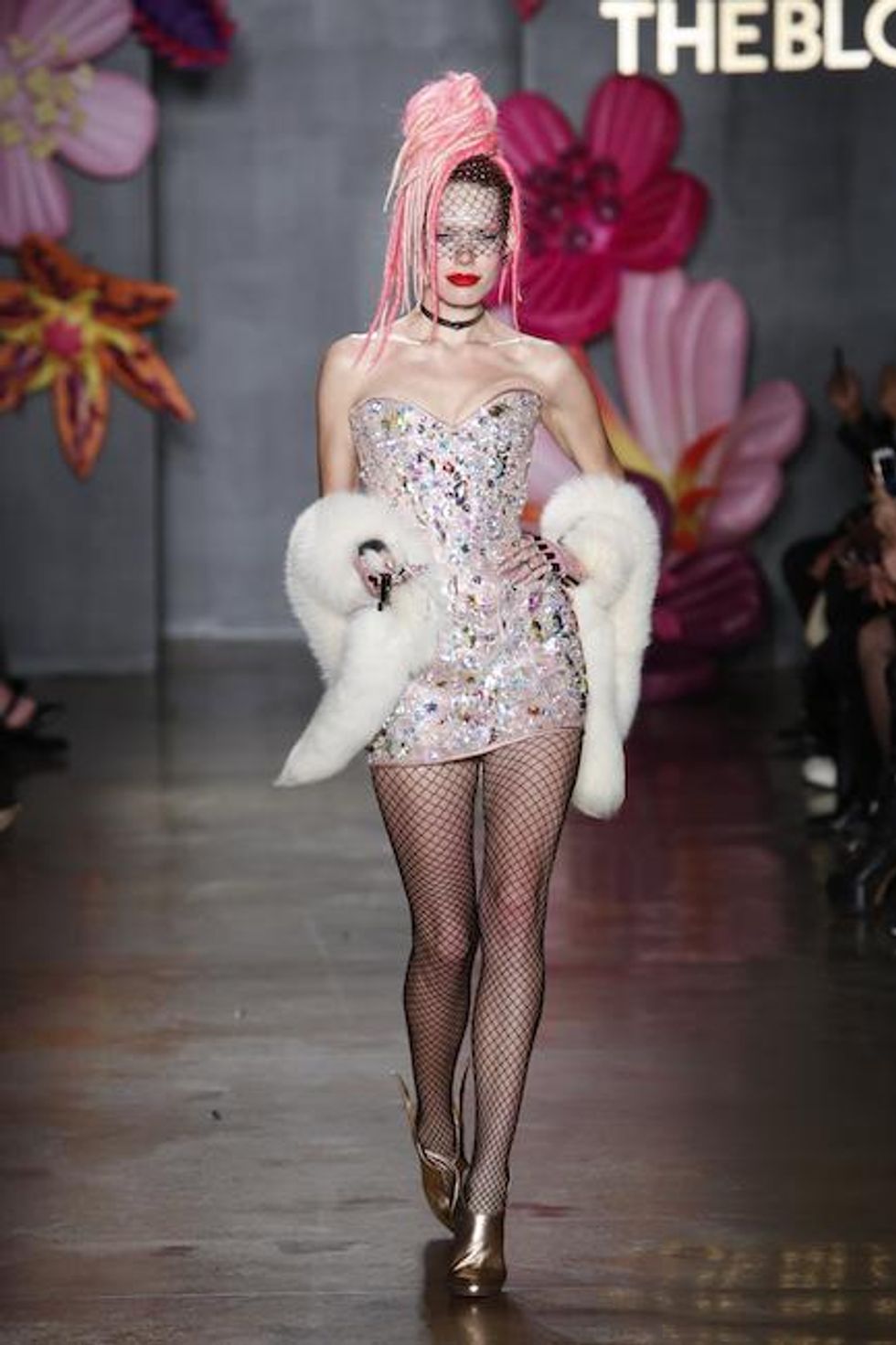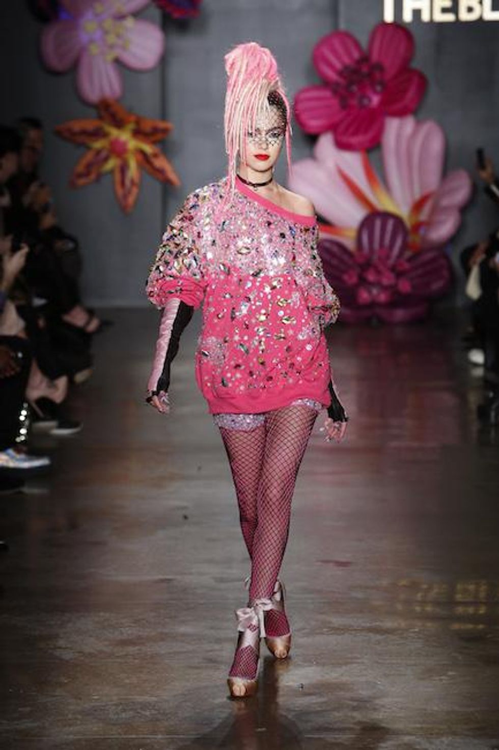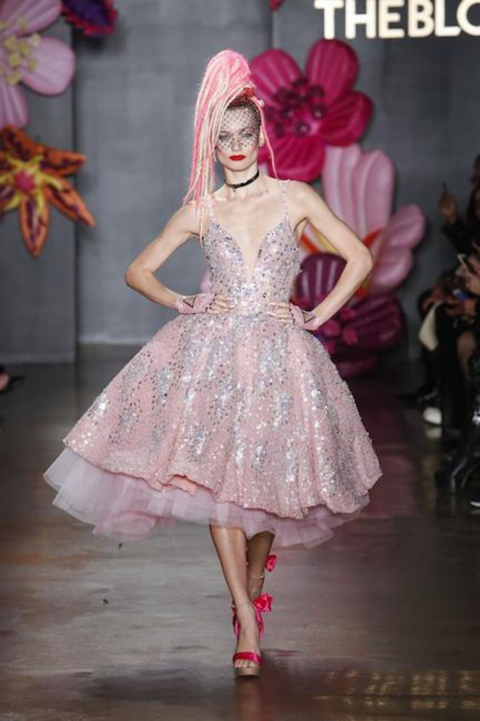 Designing outfits for Beyonce, Nicki Minaj, and Britney Spears (to name just a few of their diva clientele), Philippe and David Blond's collection is music video-ready. There were frilled, glittered dresses perfect for a "Pretty in Pink" prom, oversized 90s-esque sequined puffer jackets, and lots and lots of pink.