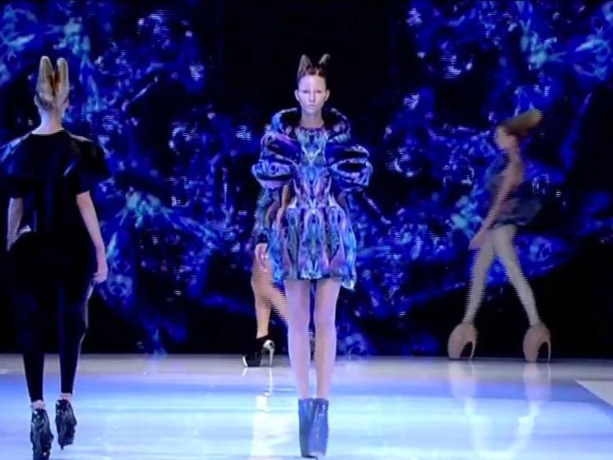 Citing Charles Darwin's The Origin of Species as inspiration, McQueen looked at the animal kingdom for his designs, referencing shapes and patterns of snakes, butterflies, and jelly fish in a masterful, visually stunning 17-minute show.