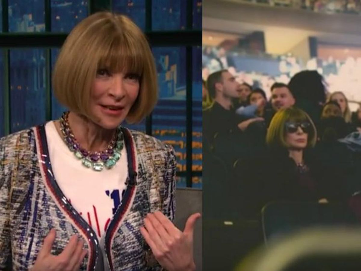 Invited on Late Night with Seth Meyers, Wintour was confronted with this dark moment of solitude when she was left "alone, abandoned, and embarrassed." She also reveals that, as she was trying to make an early exit from the show, she got lost in the basement of Madison Square Garden and almost started tearing up. Emotions, really? Now, that's what I call fashion-forward.
