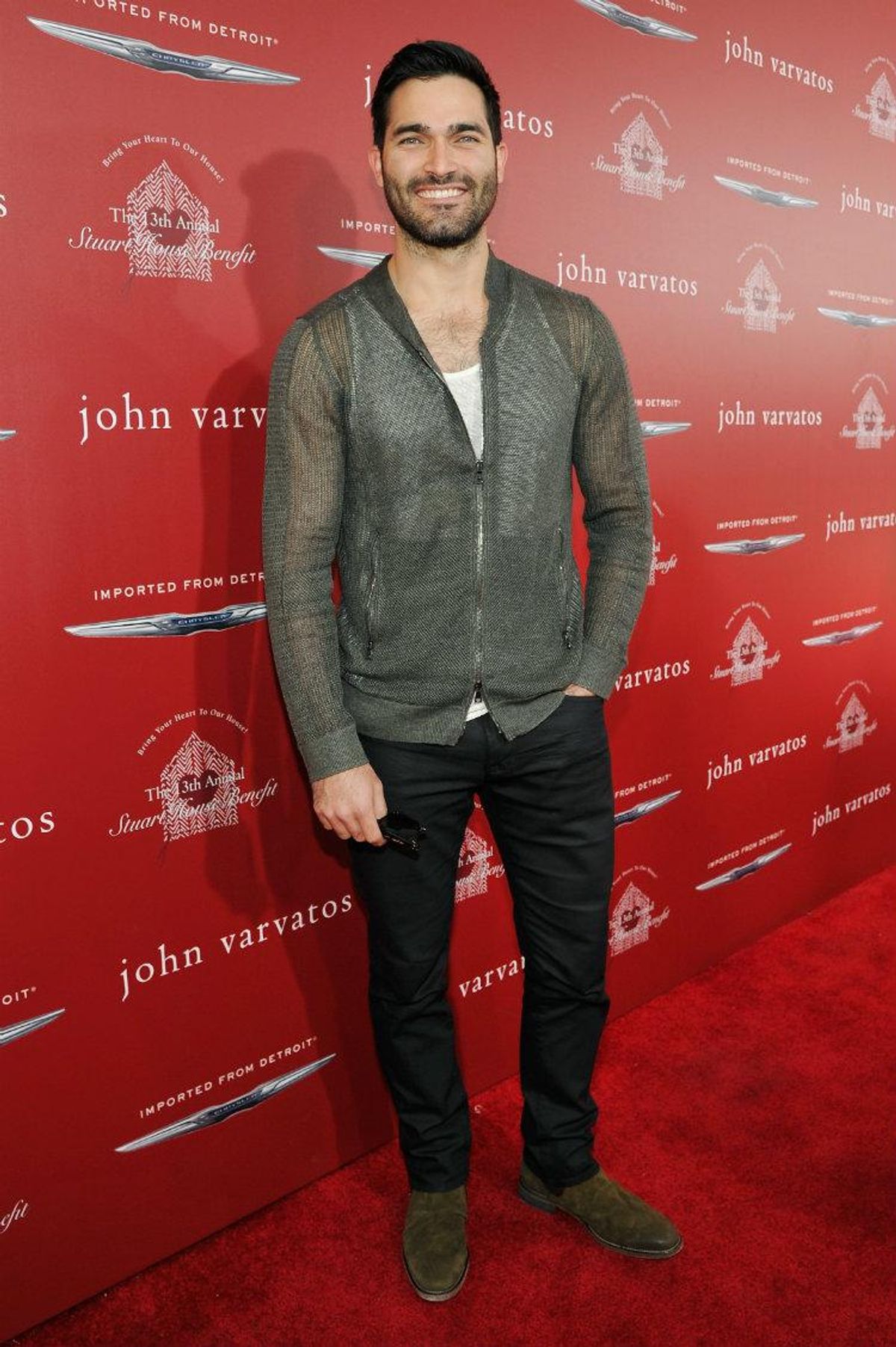 The actor went for a casual look in head-to-toe Varvatos, with an open weave cardigan (which you can get online here) worn over a white tank top, black pants, and dark brown boots. Of course the eyes, the smile, the dimples, and every part of Hoechlin's person don't hurt, either.