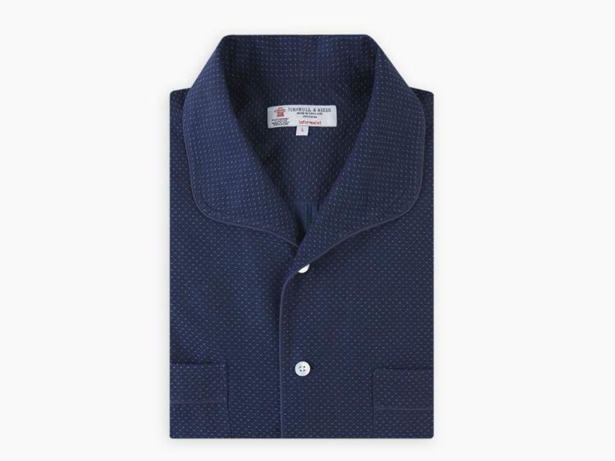 Rockland Navy Spot Cotton Shirt with Resort Collar by Turnbull & Asser, $365, TurnbullandAsser.com