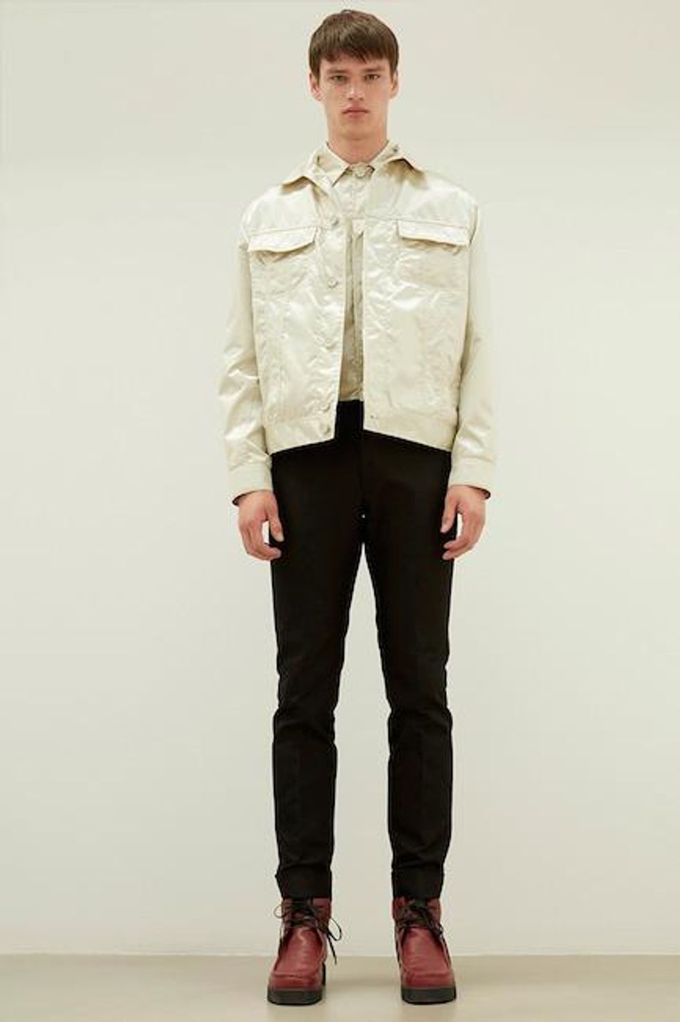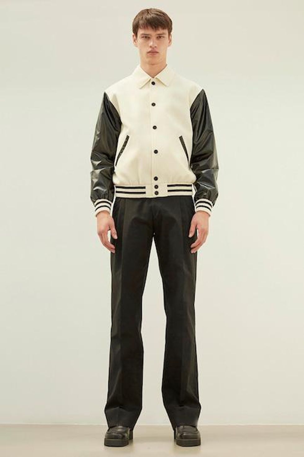 Following the exit of Italo Zucchelli as its men's designer, Calvin Klein went low-key for its latest luxury collection, opting for a still presentation rather than the usual runway show. While the brand is expected to announce Raf Simons as its new creative director, the transitional line for next spring features a clean approach to sportswear, with a restrained black and white palette of athletic-chic clothing. A mix of leather and technical fabrics on jersey shirts and varsity jacks create a lineup of elegant jocks, borrowing codes from various sports. Check out the looks.