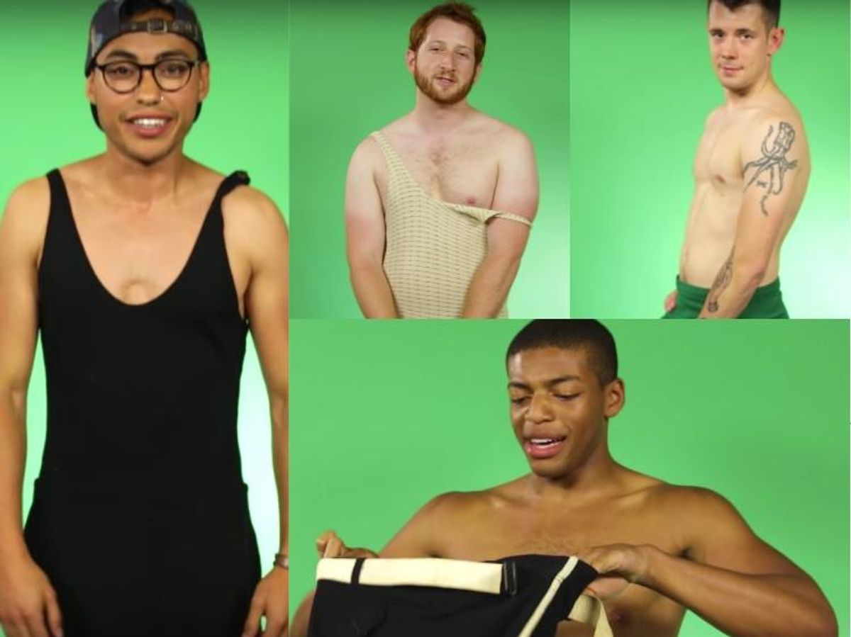 BuzzFeed gets it. Check out their video of dudes trying on classic swimwear, below: