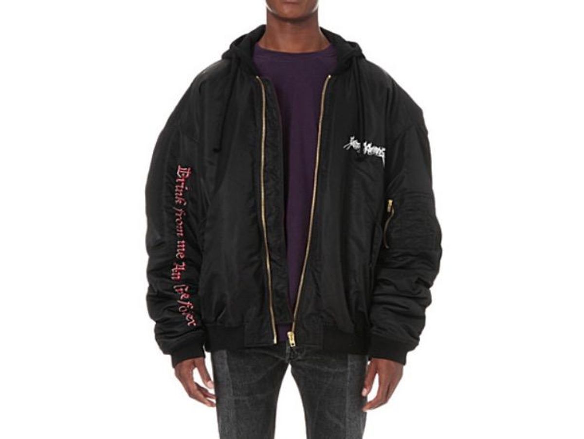 Embroidered Shell Bomber Jacket by Vetements, $1,680 at Selfridges.com.