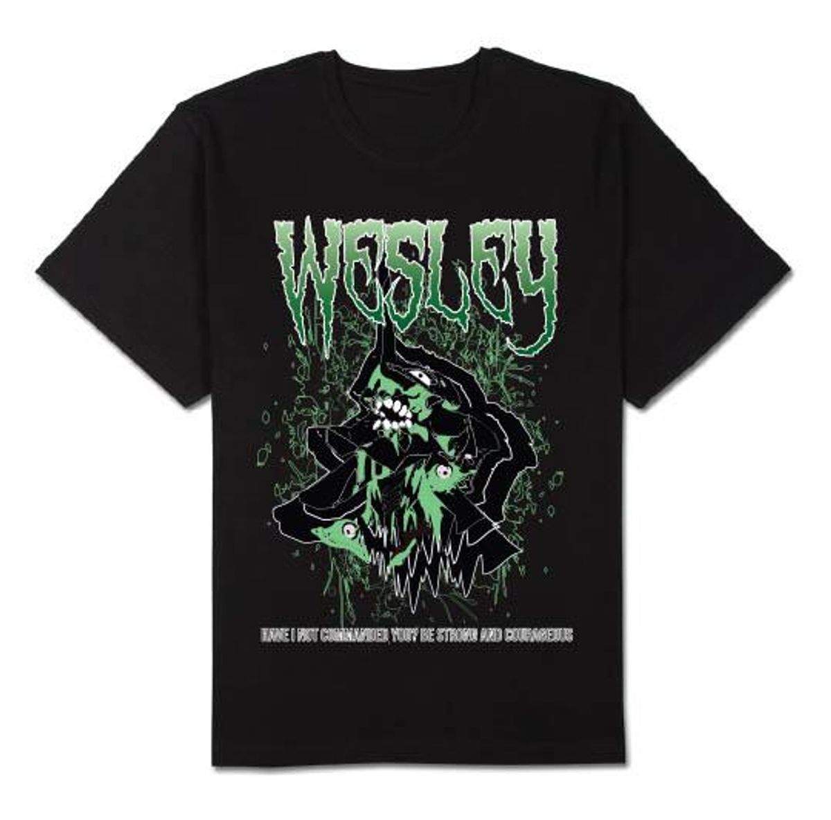 Finding courage on the same day reality star Donald Trump became the official U.S. President is rightfully difficult, but queer New York-based designer Wesley Berryman commands you to do so. "Have I not commanded you?" his unisex green band tee reads. "Be strong and courageous."