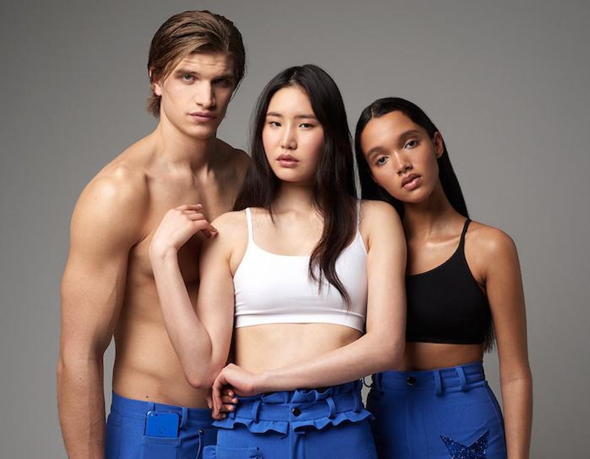 The rising talent's fusion of technology and style comes with a campaign inspired by Calvin Klein's iconic '90s denim shoot, which featured Kate Moss and Mark Wahlberg. Cowan's homage stars Toby Huntington-Whiteley posing alongside models in matching blue jeans--one pair decorated with glittery stars and another trimmed with ruffles.