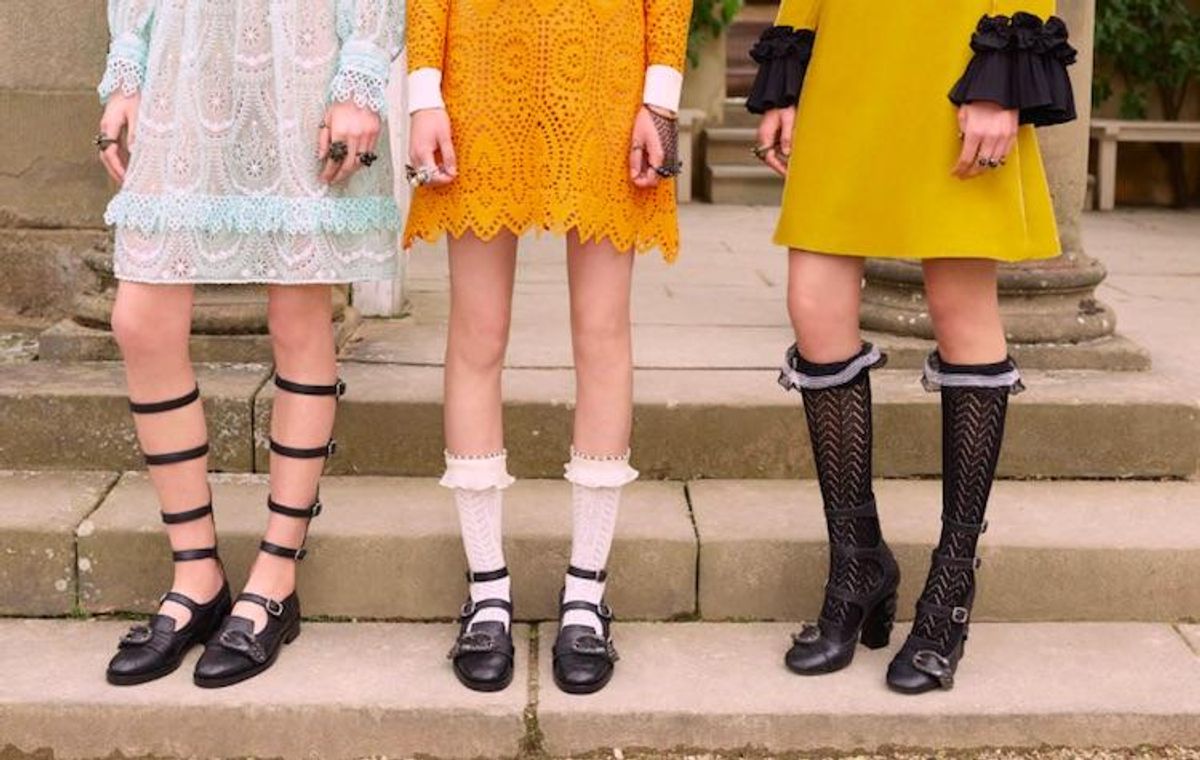 On the brand's site, Gucci says "Queercore, the gay punk movement of the mid-1980s lends its name to a new collection of shoes. Reflecting the spirit of the subculture, the styles are fitted with multiple straps, studs and metal embellishments, including the Dionysus buckle."