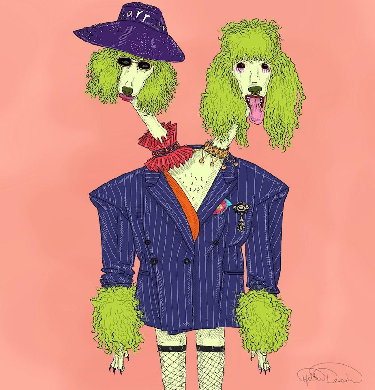 Wide-Shoulder Pinstripe Suiting Jacket (Snow Xue Gao) // Kind Art and Coronets (Velvet Eccentric) // Royal Reign (Velvet Eccentric) // Fantasy Hat Black (Claire Barrow) // Mille Fiori Drop Pin (Jay Strongwater) // Hexagonal Flat Lenses (Ray Ban)