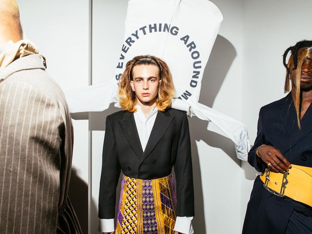 For New York-based Dominican designer Raul Lopez, this dichotomy inspired his brand LUAR's spring '18 collection, which imagined a corporate world where office hours and after hours coexisted. Aptly titled "Corporativo," Lopez subverted stuffy Savile Row silhouettes through a queer lens to create a new dress code that reimagines Trumpian cubicle style.