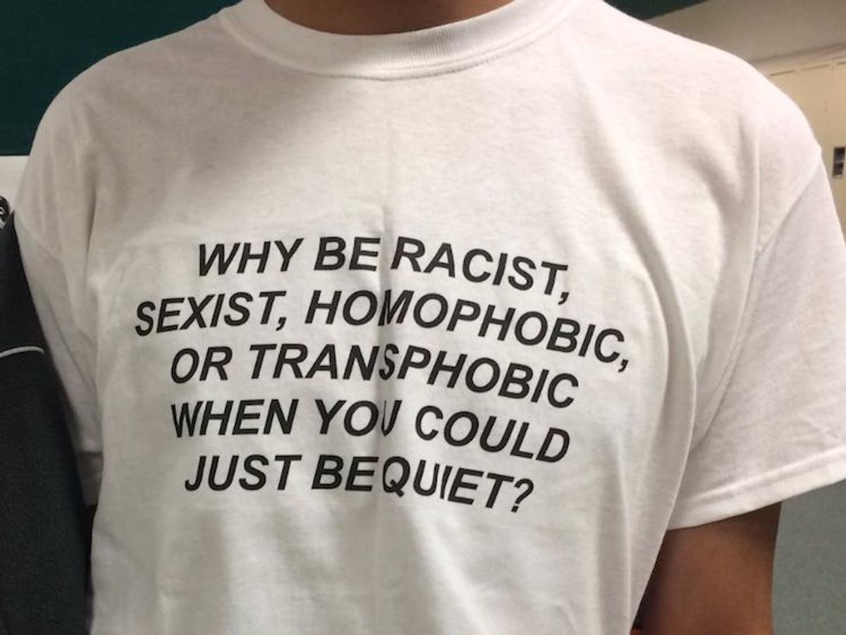 Frank Ocean made a powerful statement this weekend during his Panorama Music Festival set, with a t-shirt that read in all caps: "Why be racist, sexist, homophobic or transphobic when u could just be quiet?" Considering America's bleak political environment and a president that prefers hearing his voice over the people's, Ocean's message of silence is one that especially resonates, right now.
