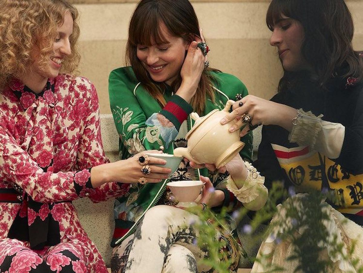 In the film, Johhnson, Nef and Collins are shown walking through gardens, sipping tea (of course), frolicking in a house filled with lush, beautiful flowers and, finally, swimming together in a pond beneath some light summer rain. It's all straight from a fairytale, and one a single spritz of Gucci's Bloom will likely bring you closer to.