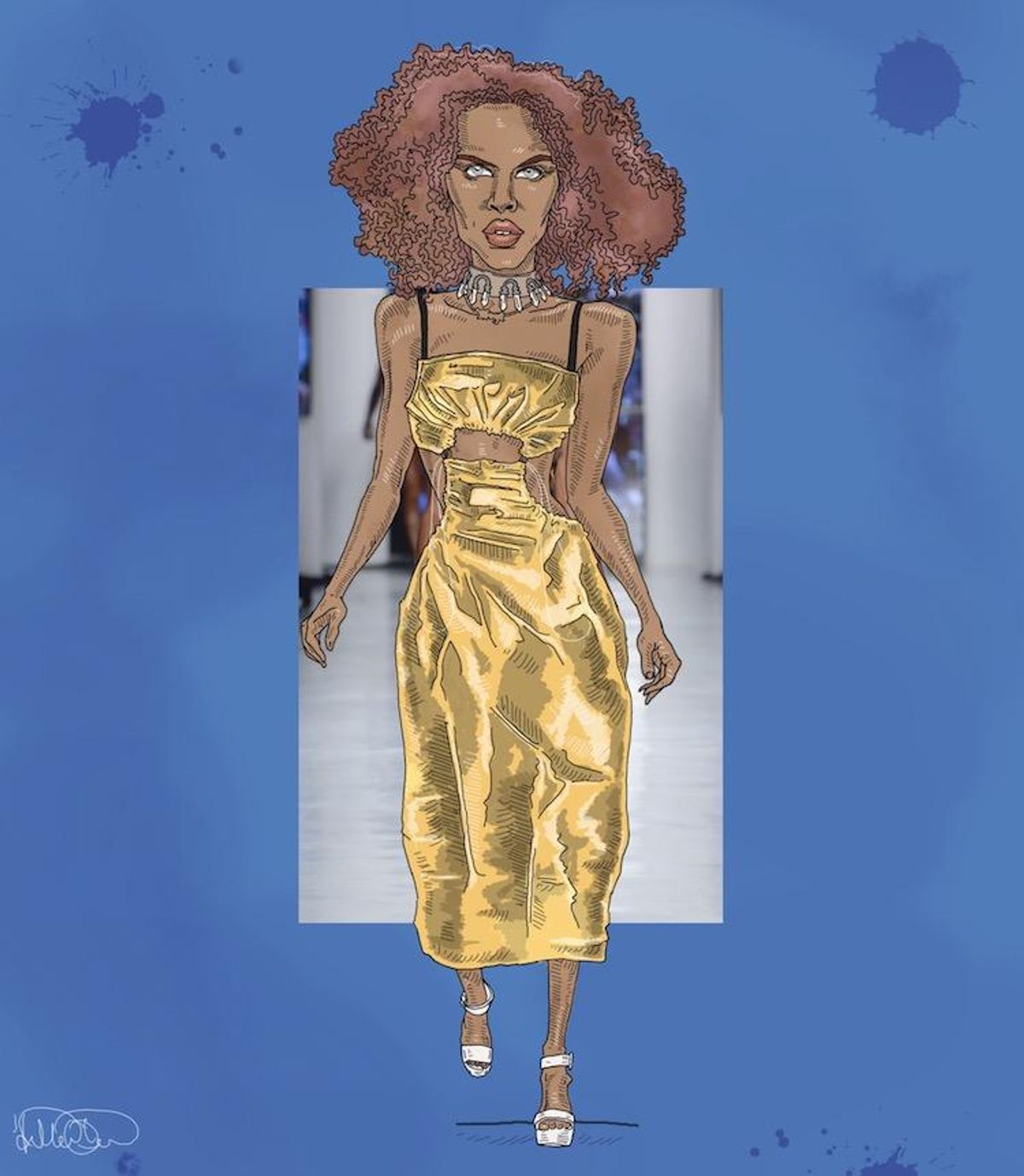Every seated audience member received an exclusive zine created in collaboration with Chromat's mastermind, Becca McCharen-Tran, and her collection of influencer models. Among those featured this season were the gorgeous trans Filipino model Leyna Bloom, who opened the show, and Maya Mones, pictured above, who closed the show in a shiny golden skirt-dress.