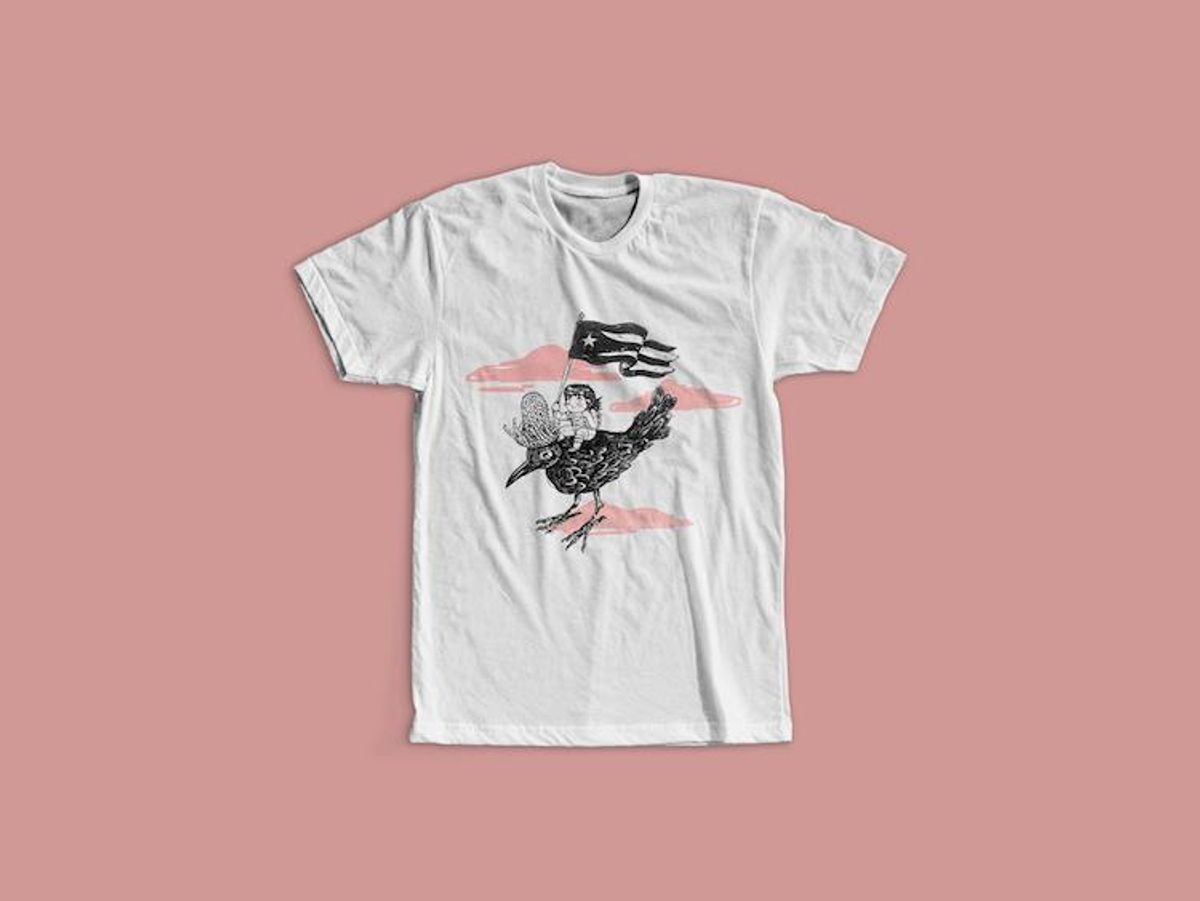 Born and raised in Puerto Rico, queer artist Pancho Guillermo Cordova felt a responsibility to help his community in the wake of Hurricane Maria's mass devastation. He's created an exclusive tote and tee "por Puerto Rico," featuring an illustration of a young child riding a bird and carrying the Puerto Rican flag amidst clouds.