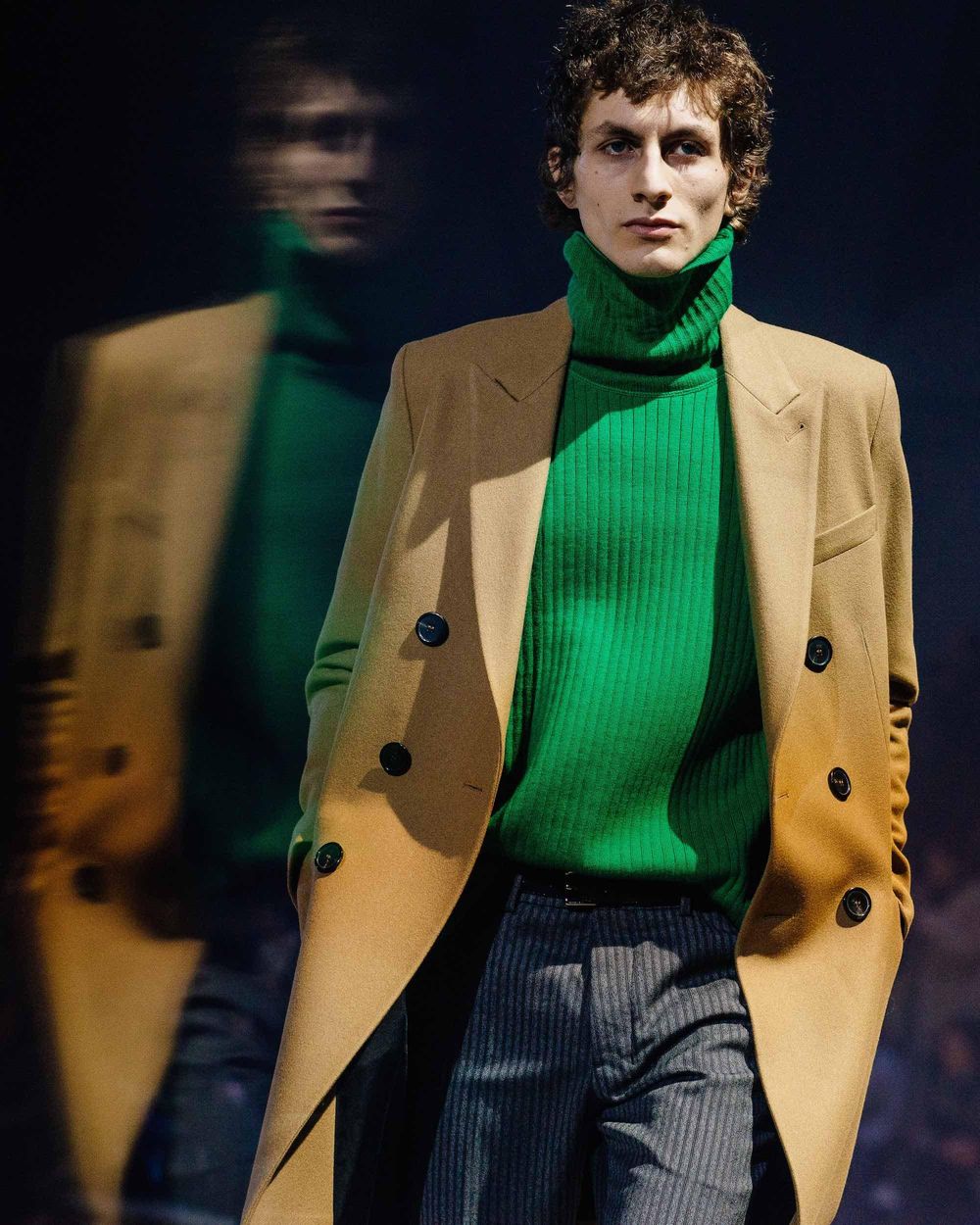 As the lights dimmed and the achingly beautiful track "November" by Max Richter began, a young couple ascended the roof in an almost perfectly matching pair of outfits-- notch-lapel black overcoats, black pants, white roll-necks, and chunky shoes you've no doubt seen on some young streetwear kid's feet in the cobblestone SoHo streets.
