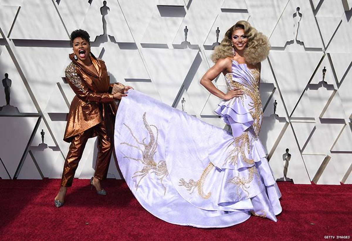 Looks like the people's All Star is back, back, back, back, back again in the spotlight -- and this time, it's at the 91st Academy Awards. Yes, ladies and gentlemen, Shangela Laquifa Wadley, the multi-season RuPaul's Drag Race competitor has made it to the Oscars red carpet, fresh off her dazzling cameo in the nominated film, A Star Is Born and a stellar performance at the Independent Spirit Awards. But she didn't come alone: on the carpet with her was Jenifer Lewis (the "auntie of Black Hollywood," who allowed Shangela to live with her for a time).