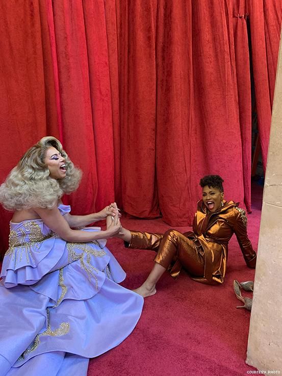 “Marc Shaiman invited Jenifer and I as his guests,” says Shangela. Shaiman was nominated for two awards for his work in Mary Poppins Returns.“That was really amazing that he and Jenifer both support me — not only as a friend but also as a drag queen — and made that moment for the very first drag queen, in drag, to walk the red carpet at the Oscars. So I will forever be thankful to the both of them. Jen is one of my favorite people in the entire world ... she was like your mom at the prom. She kept fixing my train and I would say, ‘Stop that,’ and she would say, ‘No honey, you gotta have this right.’”