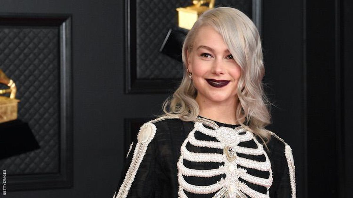 \u201cPhoebe Bridgers on the #GRAMMYs red carpet in a look inspired by her iconic skeleton onesie \ud83d\ude0d\u201d— Goss.ie (@Goss.ie) 1615763773