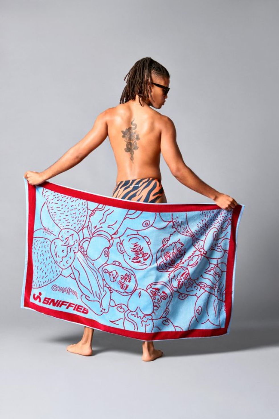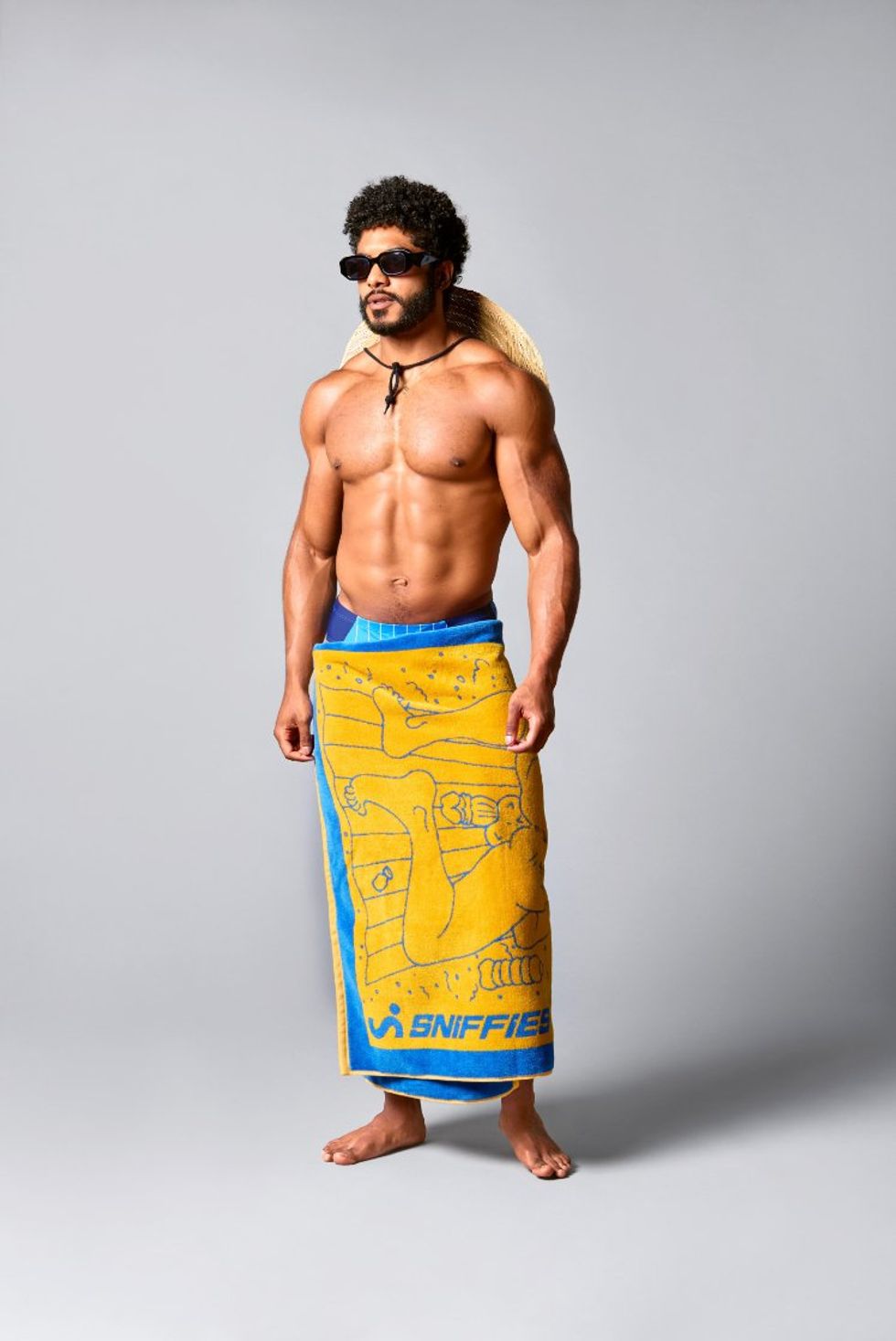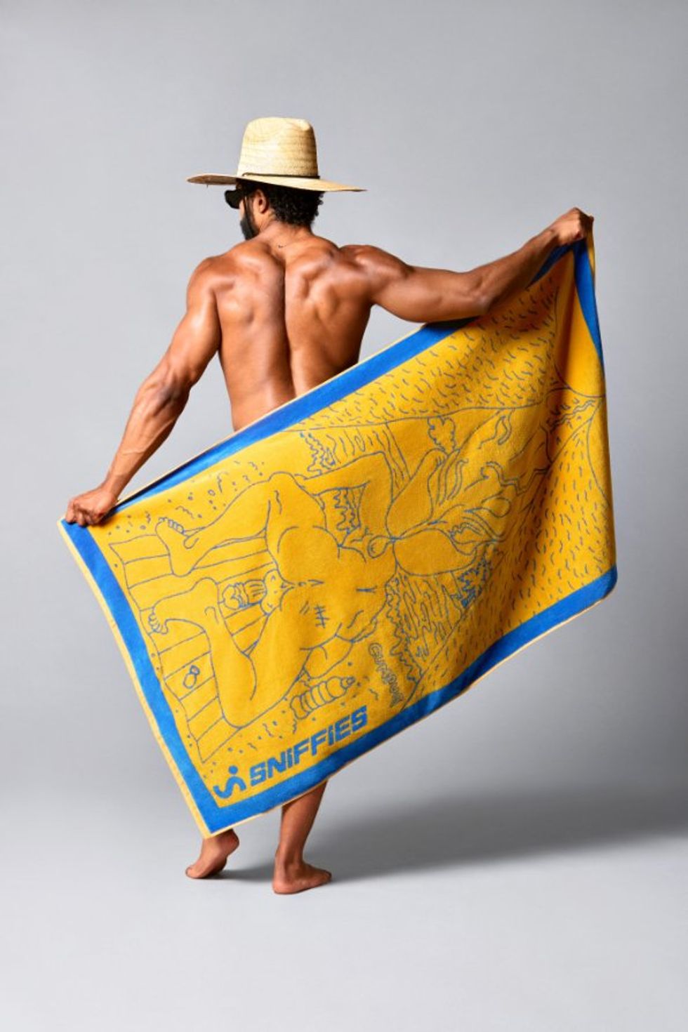 Sniffies is offering the speedos in the Beach Cruiser collection for a whopping $89 a pop, with the towels going for $69 a piece.