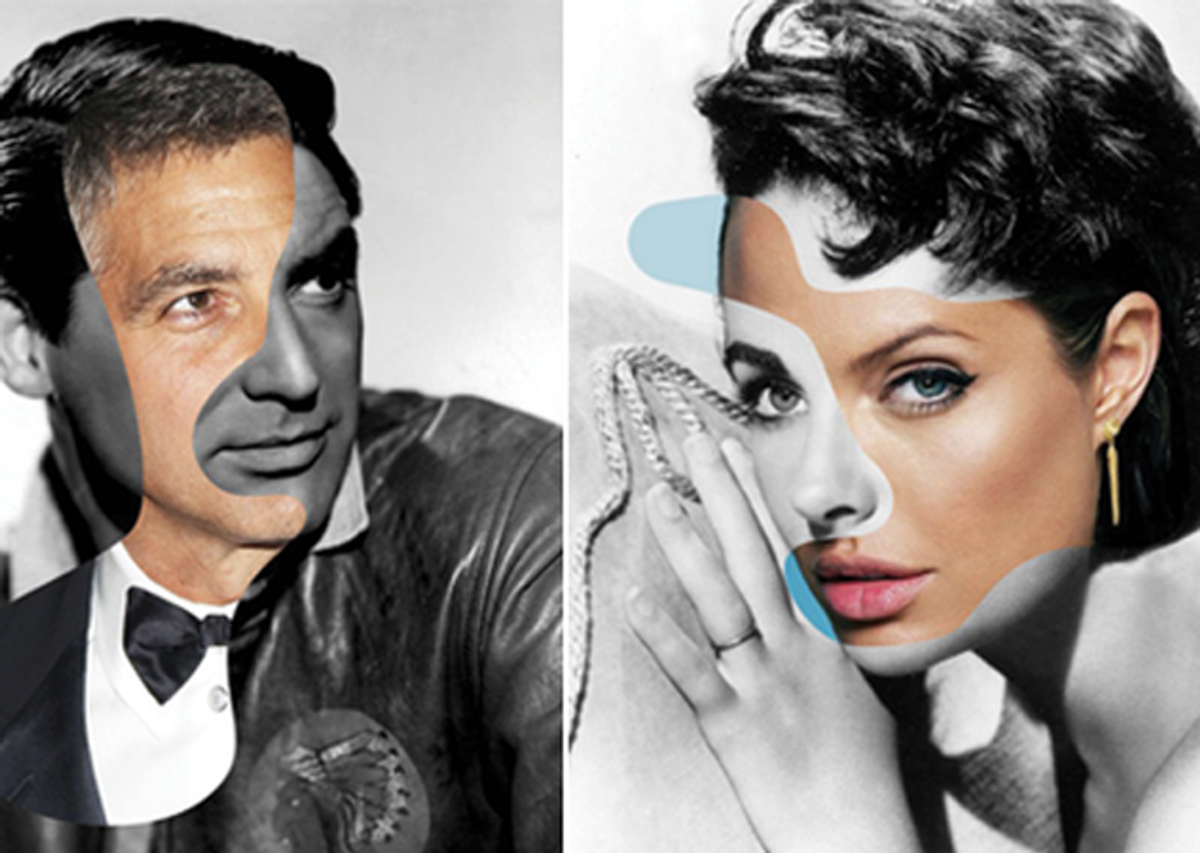Clockwise from top left: George Cloony/Carey Grant, Angelina Jolie/Elizabeth Taylor, Robert Pattinson/James Dean, Scarlett Johansson/Marilyn Monroe